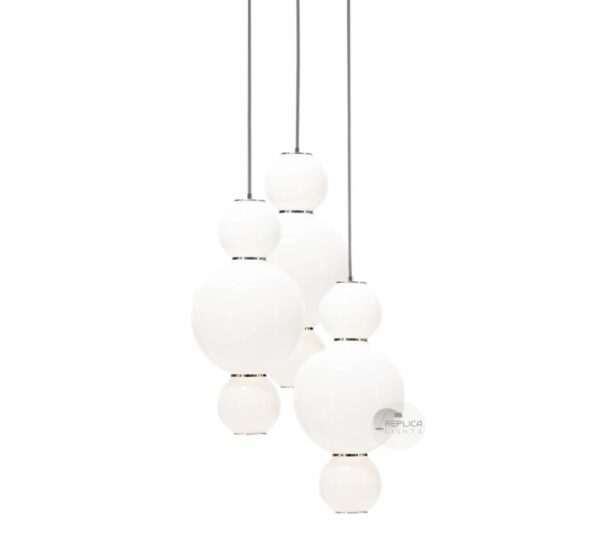 The Multi Pearls Chandelier is consist of multiple glasses but individually interconnected spherical vertical pendant lights. This uniquely designed chandelier was originally created by the German designer, Benjamin Hopf for Formagenda. Since leaving Siemens Design (Design Affairs), he co-founded a range of design studios, producing outstanding designs. One of his award-winning designs, the Pearls is available in 5 different arrangements: A, B, C, D and E, consisting of two to four bulbs with two different sizes to form the 5 different combinations.All the Pearls measure at 360mm from the top of the first glass to the bottom of last glass. Each of the fittings is finished with an upper electroplated chrome lid and a bottom electroplated chrome cover. Each round glass is joined together by an electroplated chrome connector. This award-winning designer light is illuminated by energy-efficient built-in LED globes. It hung from a round ceiling canopy and arrange with one uppermost small spherical globe, one big round medial globe and joined by one small round lower globe. These light fittings look especially stunning hung together in a group of varying heights. The Pearls will suit many applications either in a commercial setting or in any architectural residential project. To find out more about a particular designer lighting collections or series, custom lengths, styles, colours, shape and sizes, or ETA, do not hesitate to send us an enquiry from our online contact page.